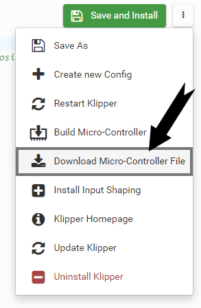 After you have finished the basic installation you will be redirected to a Klipper configuration editor. Here you can configure Klipper and compile the Micro-Controller firmware. See more on that below.