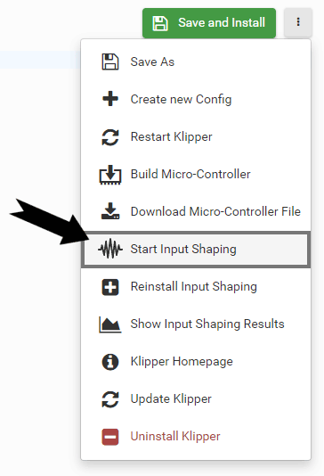 For this, you must first install Input Shaping once by pressing