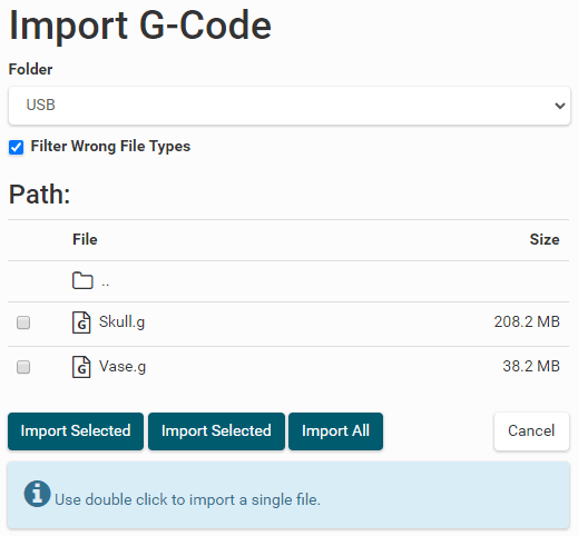 the restore options, if you just want to restore the Configuration or g-codes files, timelapses and Logs.