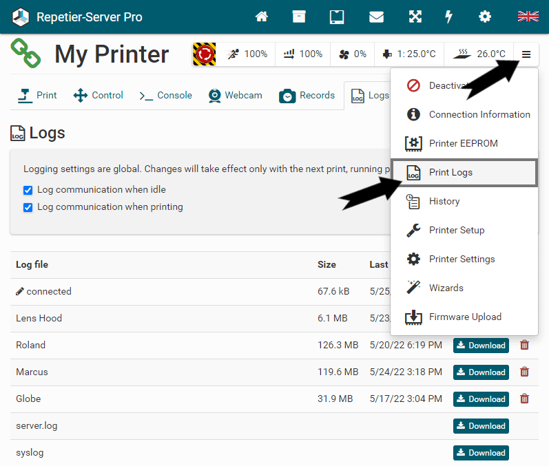 First you should download the latest version of Repetier-Server Pro from our homepage at https://www.repetier-server.com.