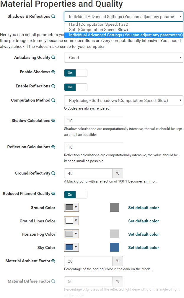 color scheme (Extruder, Feature Type, Speed, Width and Height) and what you want so be displayd. Click