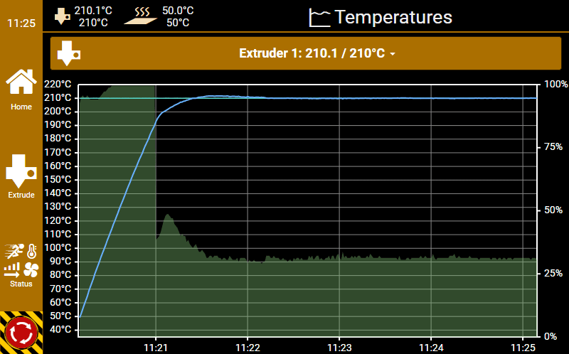 The results graphs can be viewed at any time on the Klipper configuration page by pressing the